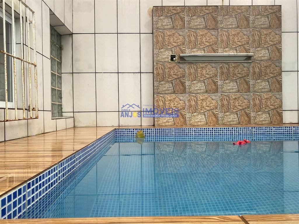 Área de lazer abrangendo metade da área do imóvel com Piscina com cascata, churrasqueira, chapa de aço, balcão com banquinhos deck Molhado integrado com o Espaço Gourmet com Churrasqueira Pia de granito e outro balcão com banquinhos. Salão grande com balcões de granito fechado com armários e uma mesa de madeira maciça e dois bancos grandes e dois pequenos, que acomoda mais ou menos dez pessoas. Pia de granito também com armários com portas de mogno. Salão de Festas ao lado do salão grande que atende a sauna, duchas e banheiro; mesas de madeira com quatro cadeira para cada mesa. Ao lado da cobertura que abrange a edícula que á casa principal, um banheiro que abrange o jardim. Essa rea coberta pode ser usada como salão de refeição.
