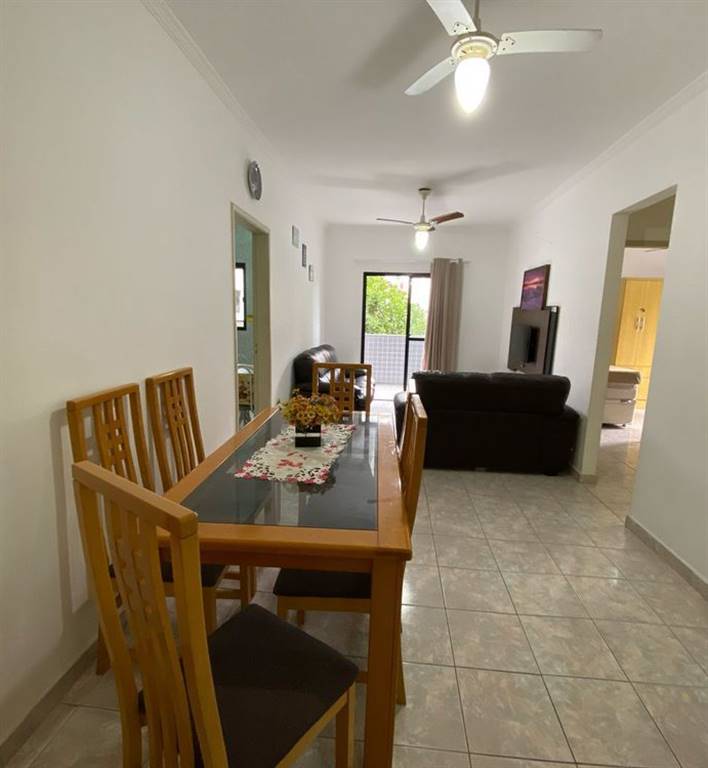 1 dormitório, sala, varanda, cozinha com planejados, área de serviço, banheiro social espaçoso, 1 vaga de garagem, vista para o mar